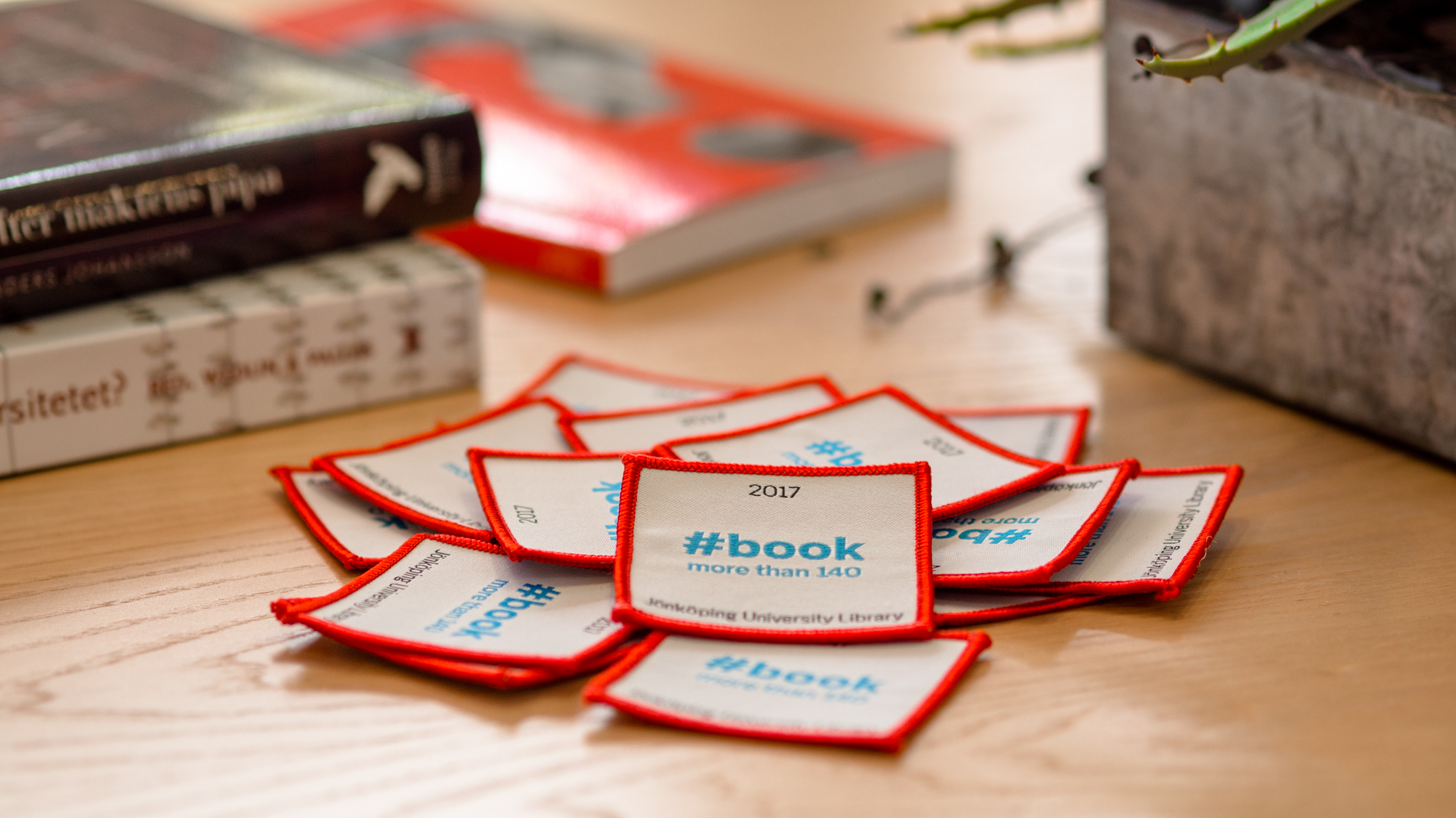 2017 års tygmärke från biblioteket finns nu att hämta i informationsdisken.