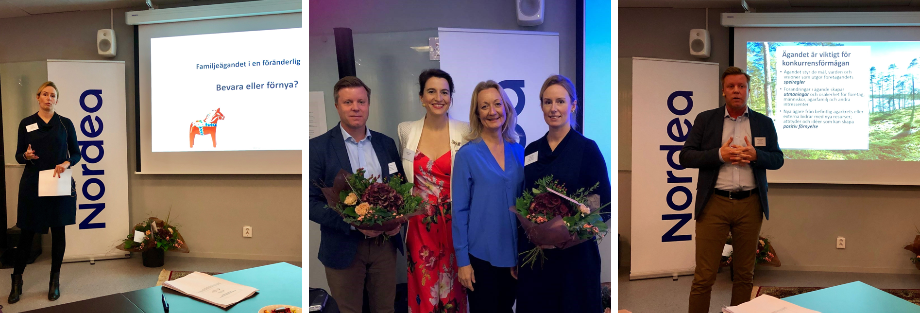 After a welcome address by Anna Hedenborn and Peter Dalmalm (Nordea), Kajsa and Mattias talked about the challenges and opportunities of family ownership from a research perspective. Thereafter, Helena von der Esch and Grant Thornton explained how and why an ownership constitution is important for active ownership. After lunch, Gunnar Rytterling (Nordea), shared insights about the latest developments in Application Programming Interface (API) and automation of currency trading. This was followed by an inspiring talk from Jan Ferlin, a communication advisor, about the strength of family business brands and how to nurture them. The day concluded with a panel discussion with three business owners, generously sharing their ups and downs from different succession experiences.
