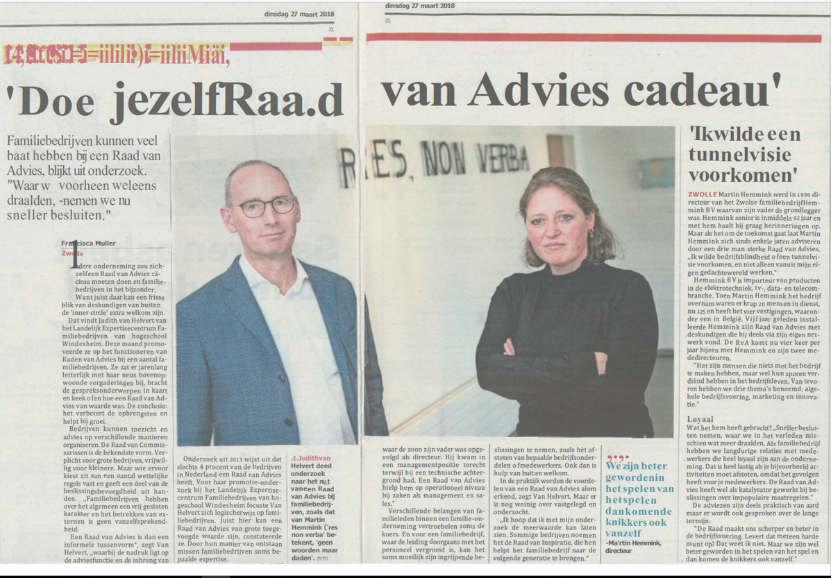 The article is based on an interview done with Judith where she presents the main findings from her dissertation on advisory boards, in combination with a reaction of one of the family firm owners where she carried out her study.
