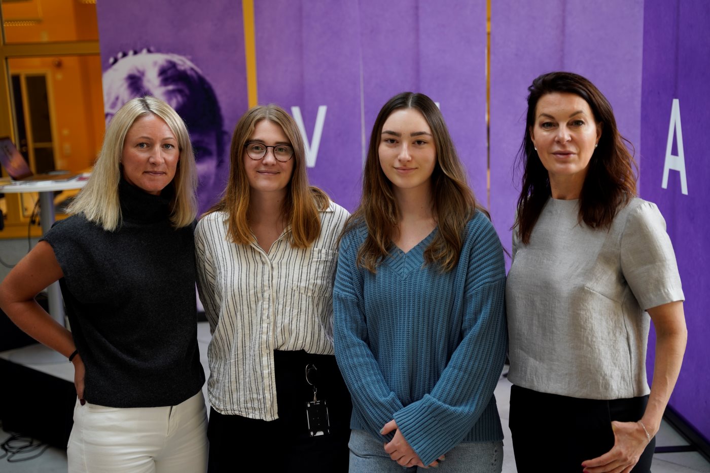 Här är några av teknikstudenterna, och läraren Susanne Petri, från ED-gymnasiet som medverkade på VERA-dagen på JTH. Från vänster: Emma Leandersson, Susanne Petri, Daribel Cherry och Khushi Mepani.