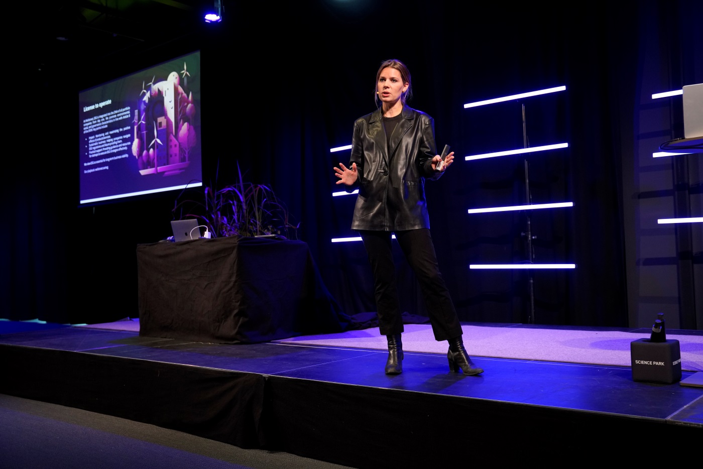 Evelina Anttila, vd för Wellstreet och drake i SVT:s Draknästet, var en av föreläsarna på AI-dagen i Science Park Towers i Jönköping.