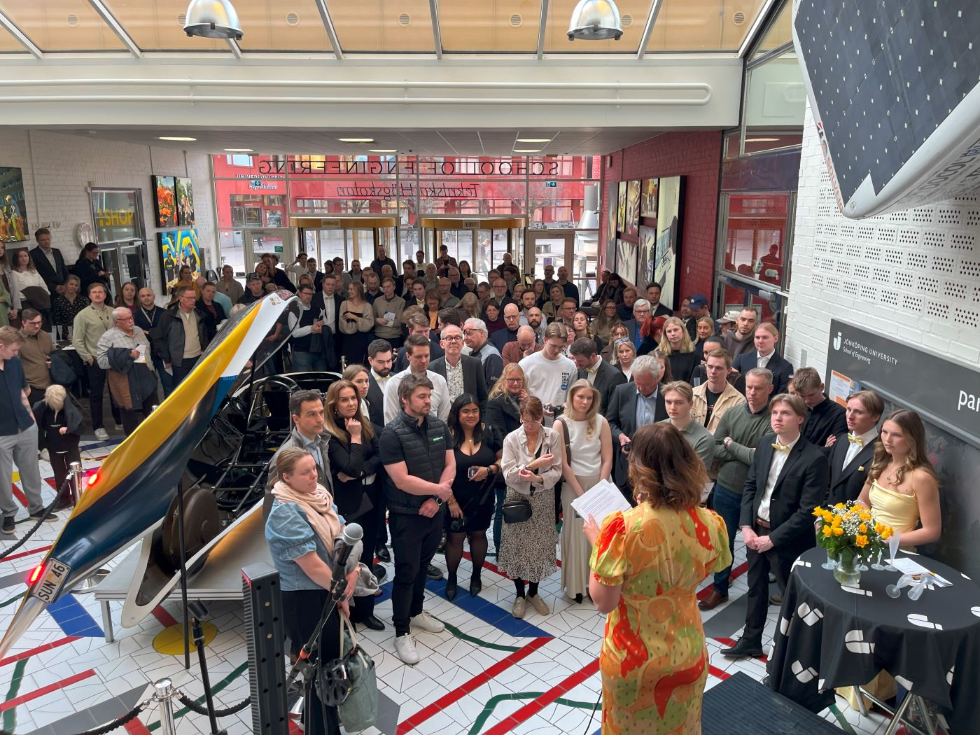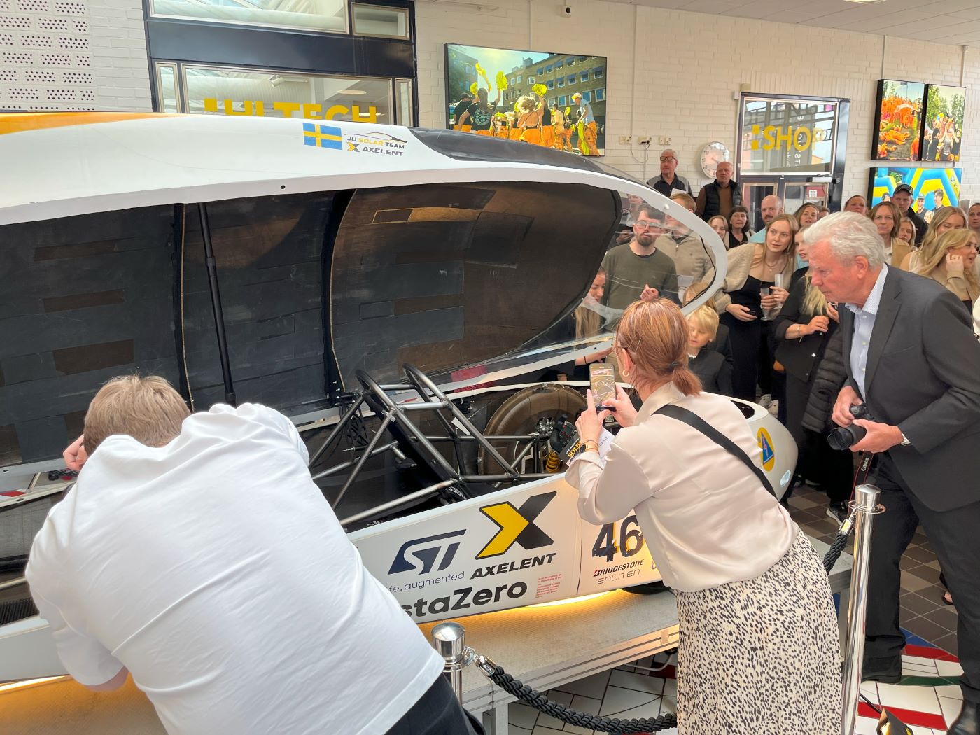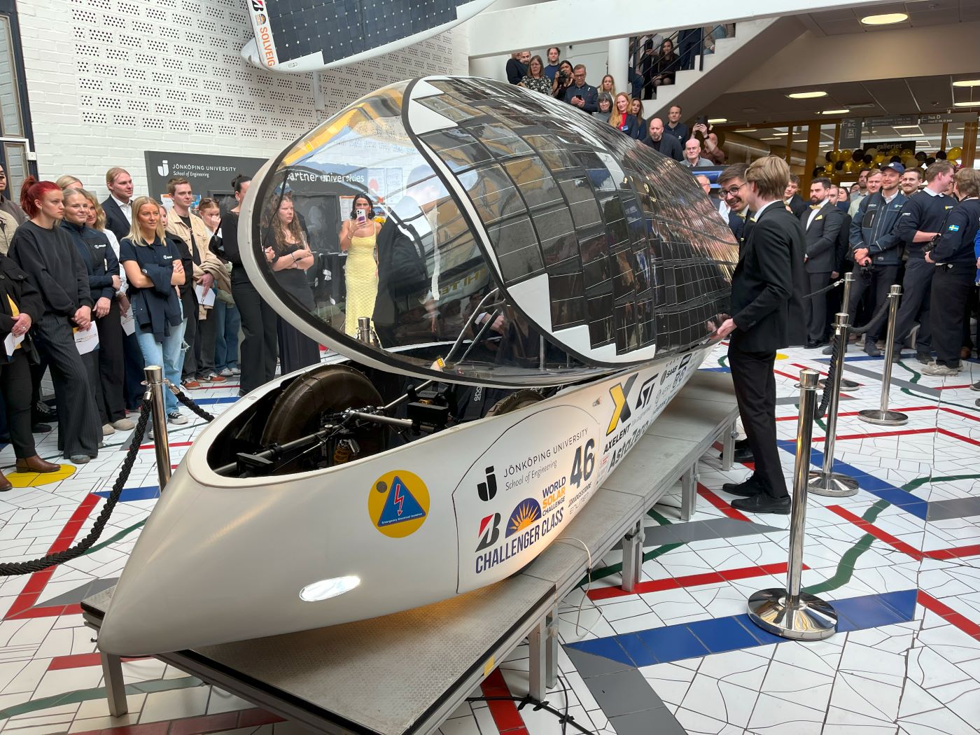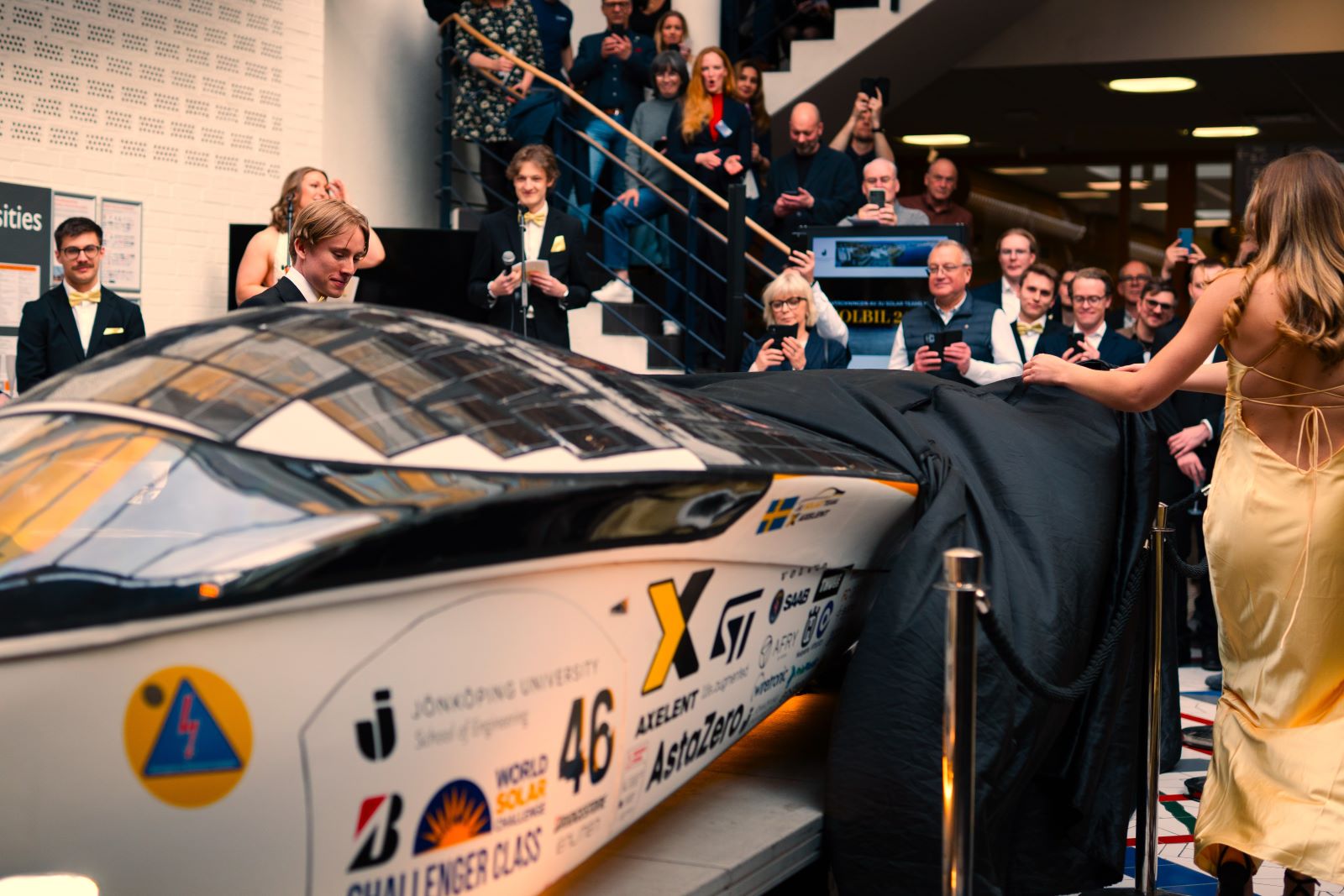 JU Solar Team hade avtäckning för sin solbil inför cirka 300 personer i Tekniska Högskolans entréhall den 10 april.