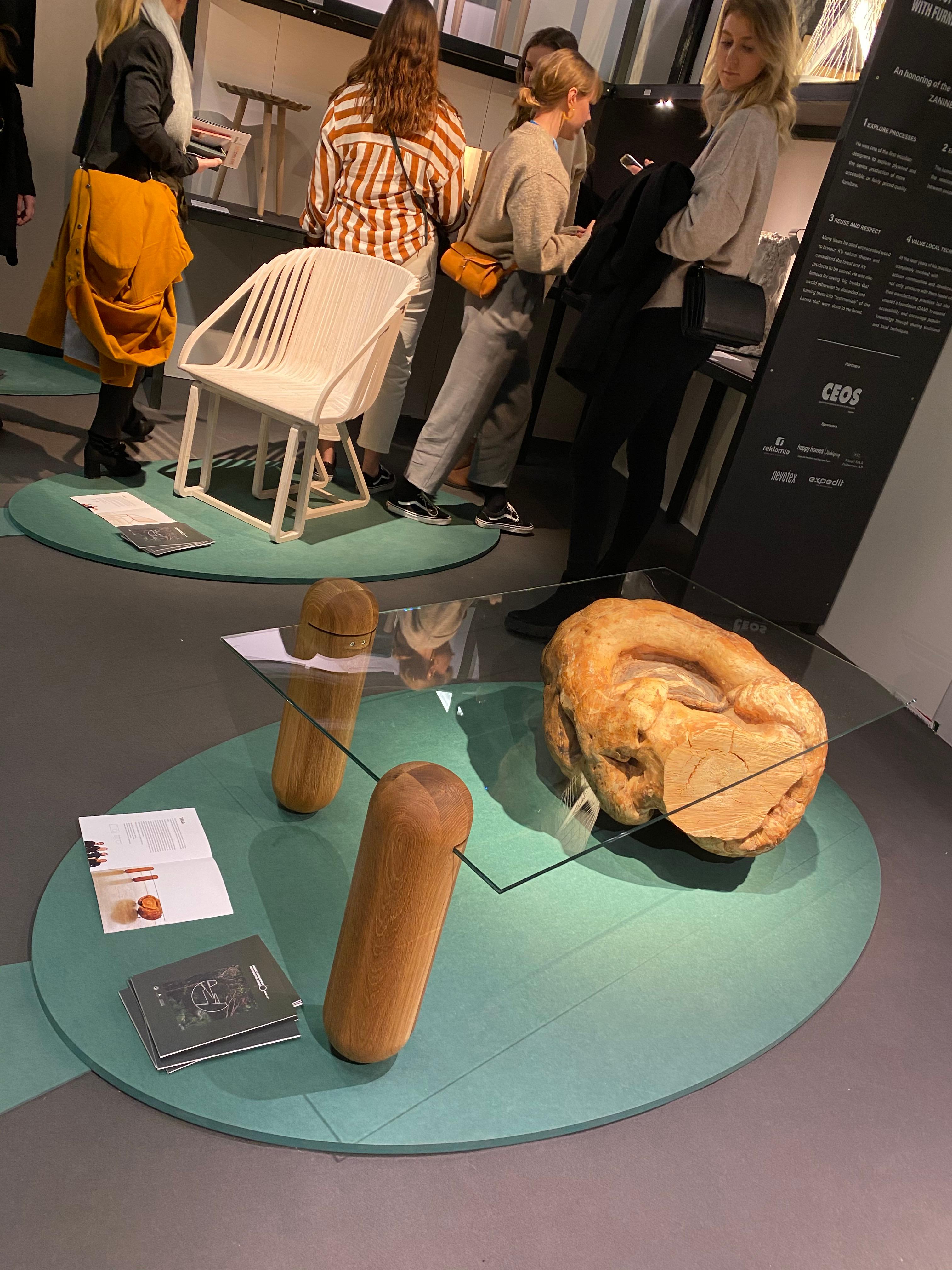 Students at the School of Engineering present their furniture in a stand at the Stockholm Furniture Fair.