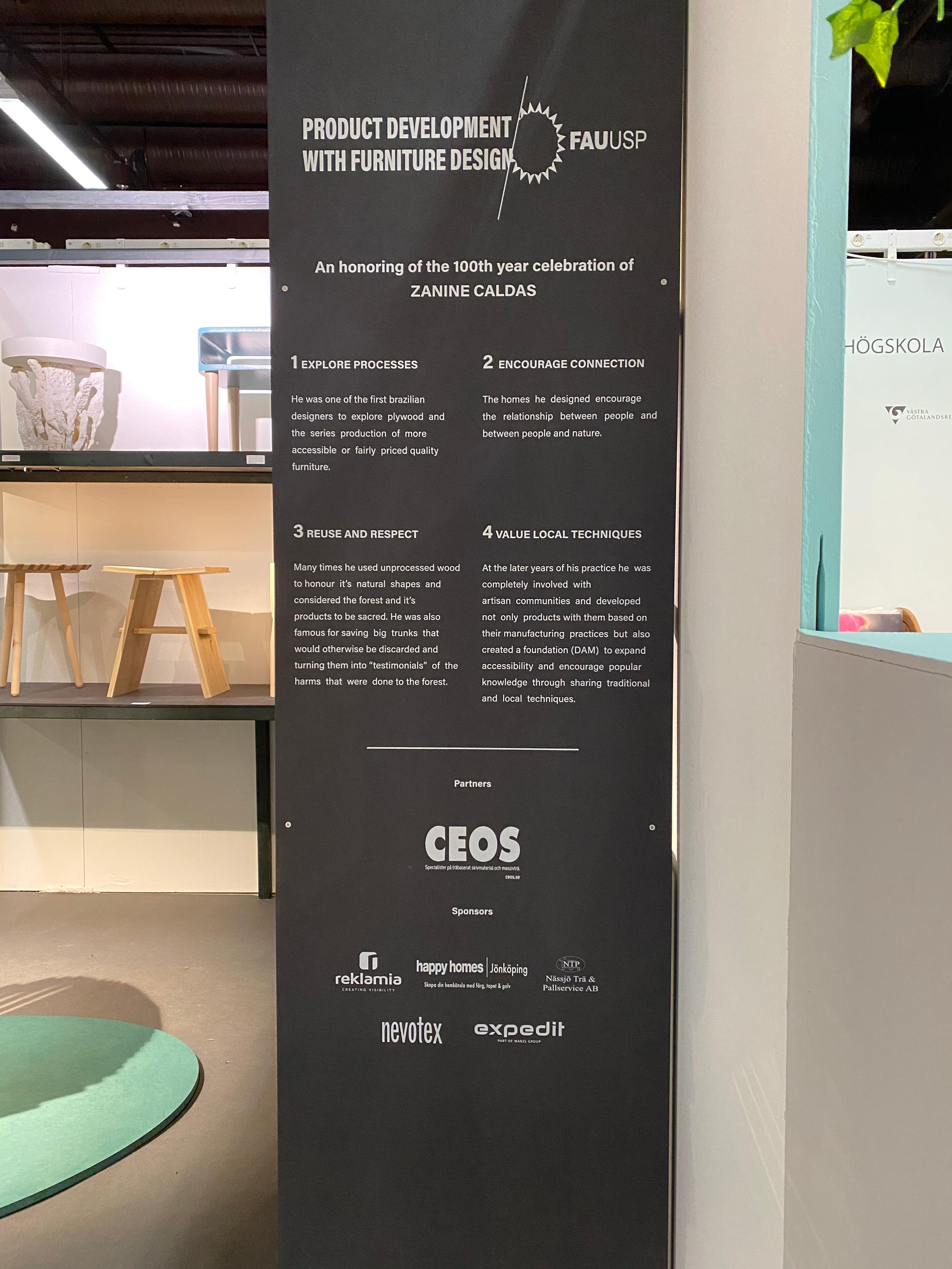 The exhibits that were displayed on the floor of the main stand at the fair are part of the second year PUM students' course work. They were made in honor of the famous Brazilian furniture designer Zanine Caldas, who would have turned 100 years in 2019.