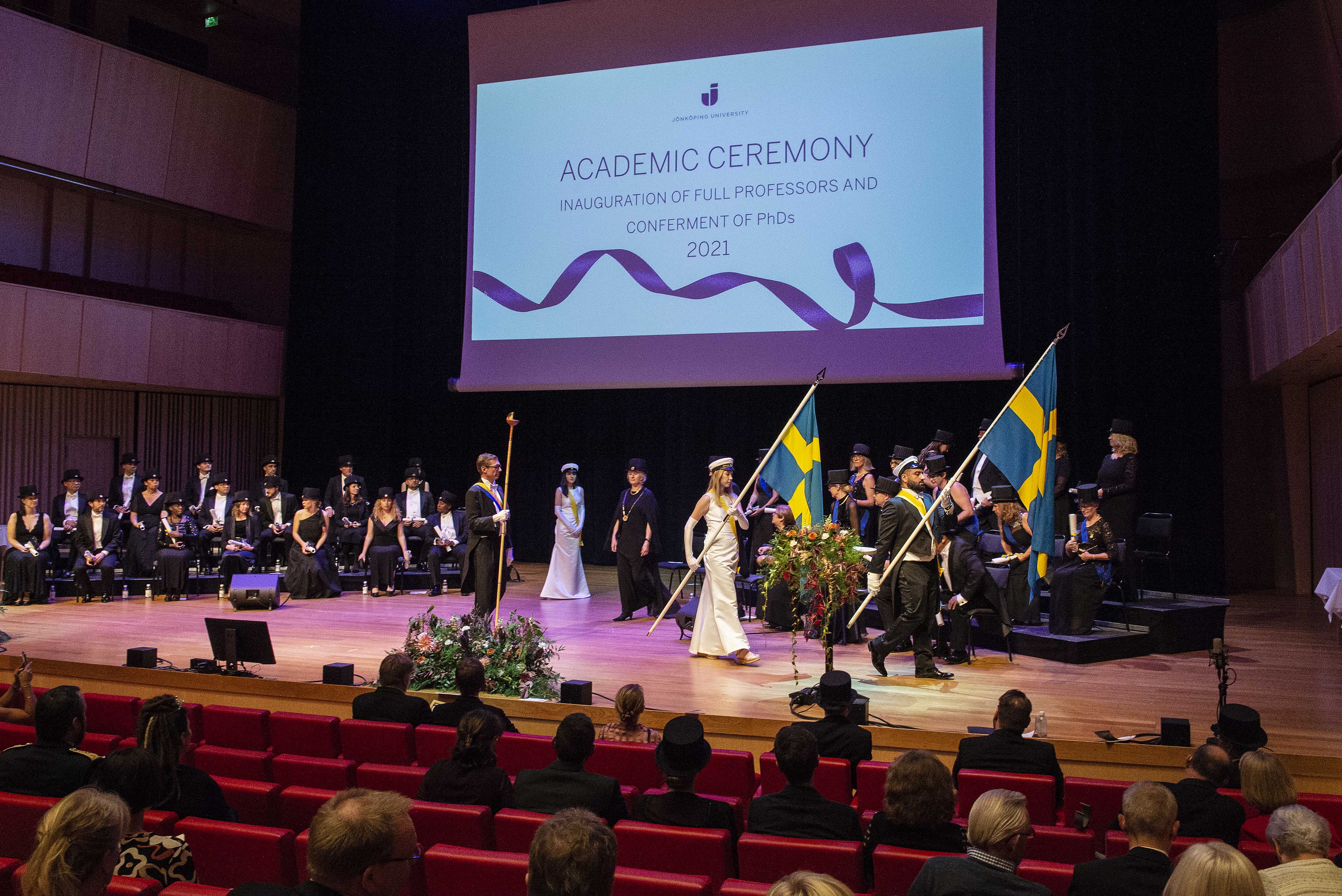 The inauguration of full professors and conferment of PhDs takes place every 18 months at Jönköping University. In connection, the newly installed professors and honorary doctors will give public lectures.