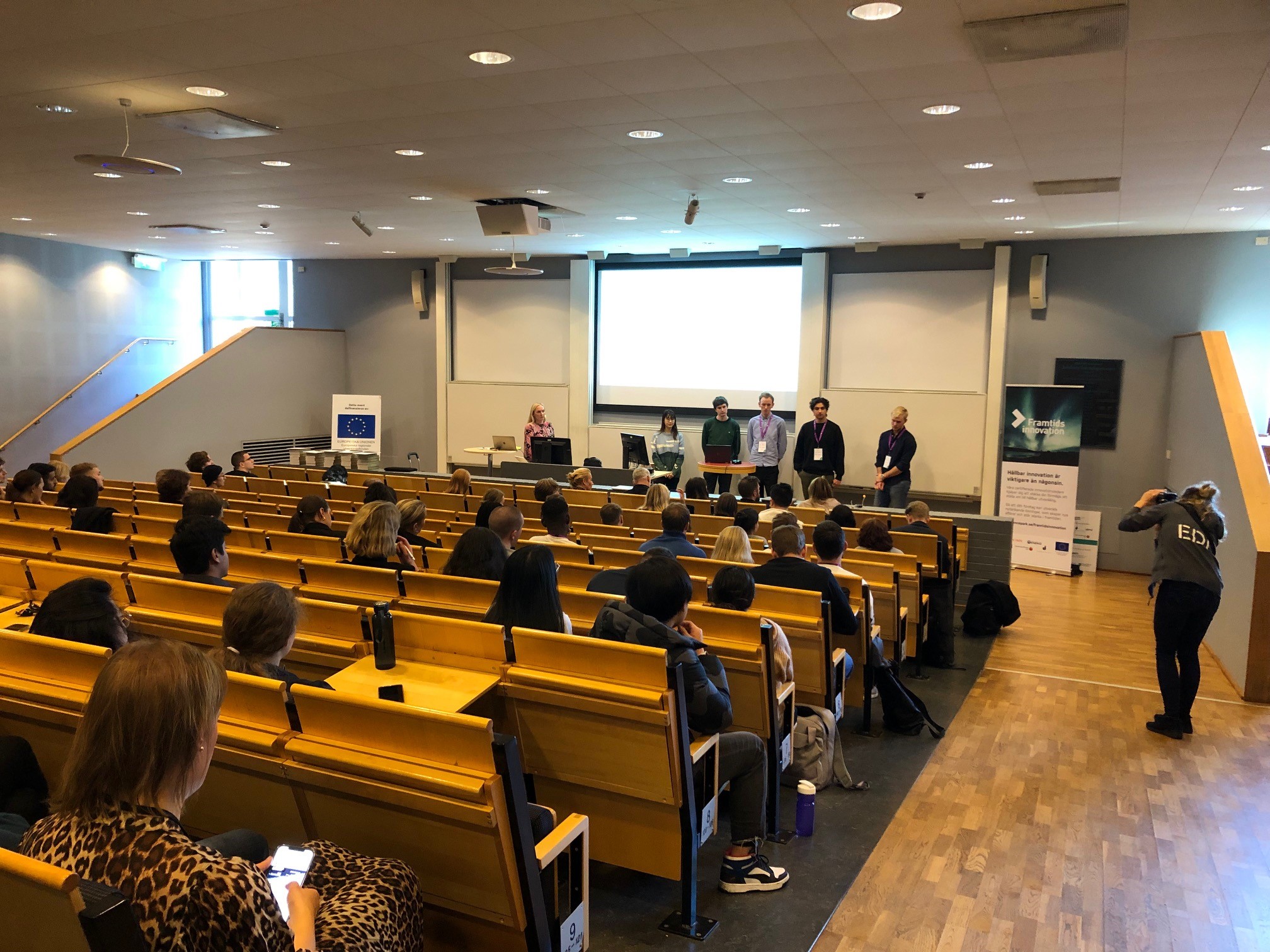 After tough deliberation by the jury, consisting of representatives from JIBS, Starbright Invest, ZiGrid and Science Park, the winners were announced. On the winning team were: Jef Vloeberghs, Aneta Benedigova, Femke Van Verre, Juliette Nicolodi, Pauline Held and Carlotta Schäfer. They presented an innovative solution to reuse MP Bolagen's cable ladders, focusing on circularity and social sustainability. The prize pool consisted of 15,000 SEK and a copy of the book "Exponential climate change" by Rebecka Carlsson.