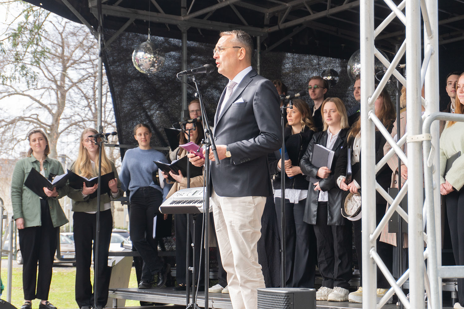 Jönköping University's academic choir, JUVE, led by conductor Dan Boberg, opened the celebrations with traditional songs like "Sköna maj," "Studentsången," and "Vintern rasat." Anders Jonzon, Director of Communications at JU, was the presenter, sharing details about Jönköping's overall tradition and talked about JU:s 30th anniversary as a foundation university.