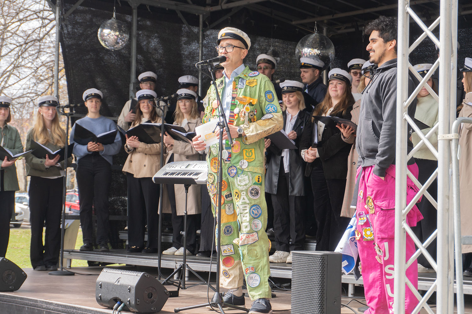 Måns Svensson, the newly appointed president of Jönköping University, delivered his first spring address to the cheering crowd. The celebrations concluded with more choir singing and a speech by Jose Alvarado, president of the Jönköping Student Union. Afterward, the student union hosted activities with competitions, music, and a DJ.