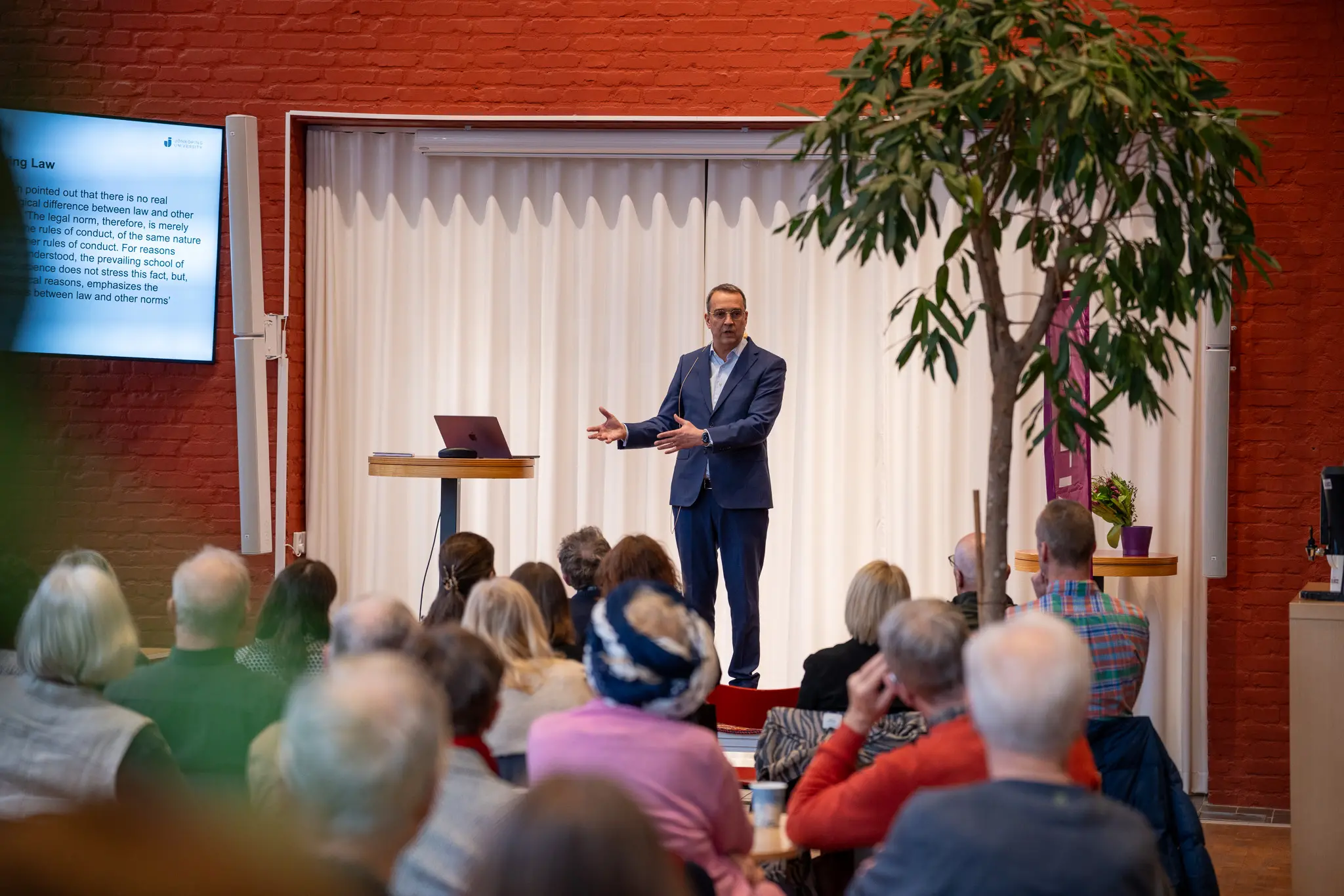 On Thursday 27 February, Måns Svensson, President of Jönköping University (JU) and Professor of Sociology of Law at the School of Health and Welfare presented in the spring semester's edition of the lecture series JU LIVE. About 60 people gathered in the JMW hall at the library to take part in the lecture, which focused on, among other things, how people follow laws.