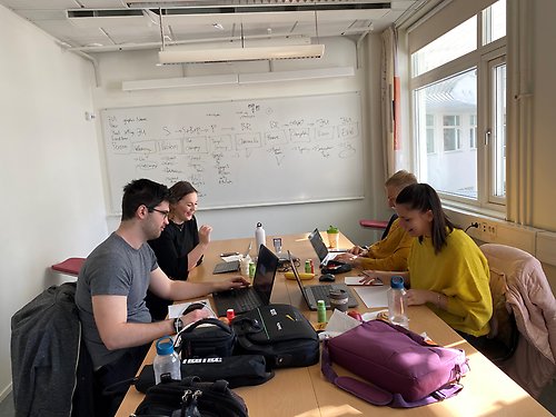 A team from this year's JIBS Entrepreneurship Challenge receiving coaching from a JIBS mentor via a digital meeting platform.