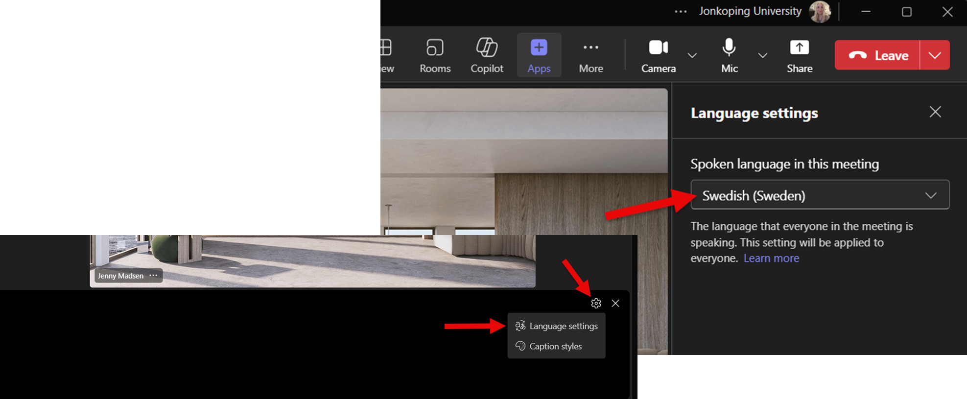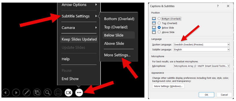 In the same place, you can also set the language you want the subtitles to be in. It can be the same language as the spoken language, but it is also possible for PowerPoint to automatically translate into another language. In other words, you can, for example, speak Swedish and get the subtitles in English, or vice versa.