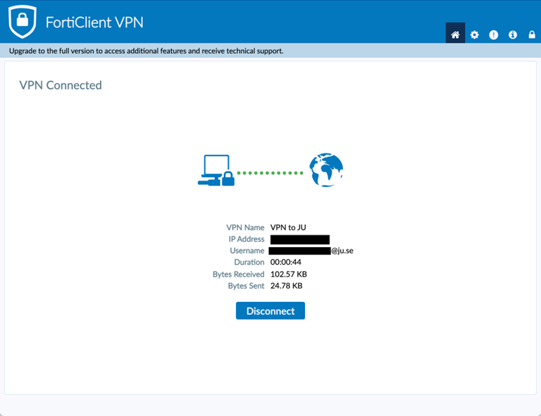 When you are connected it will look like this, click on Disconnect if you no longer want to use the VPN service.