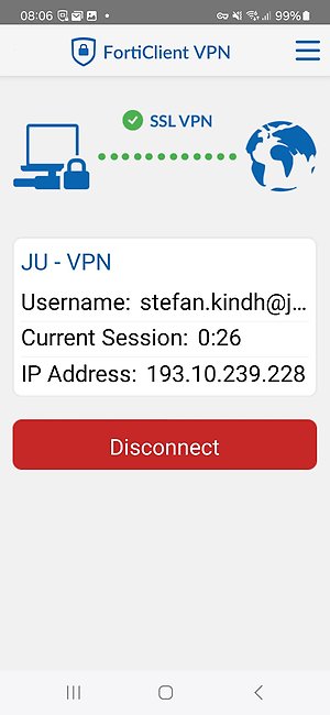 On JU-managed mobile devices, the FortiClient VPN will be deployed automatically.
