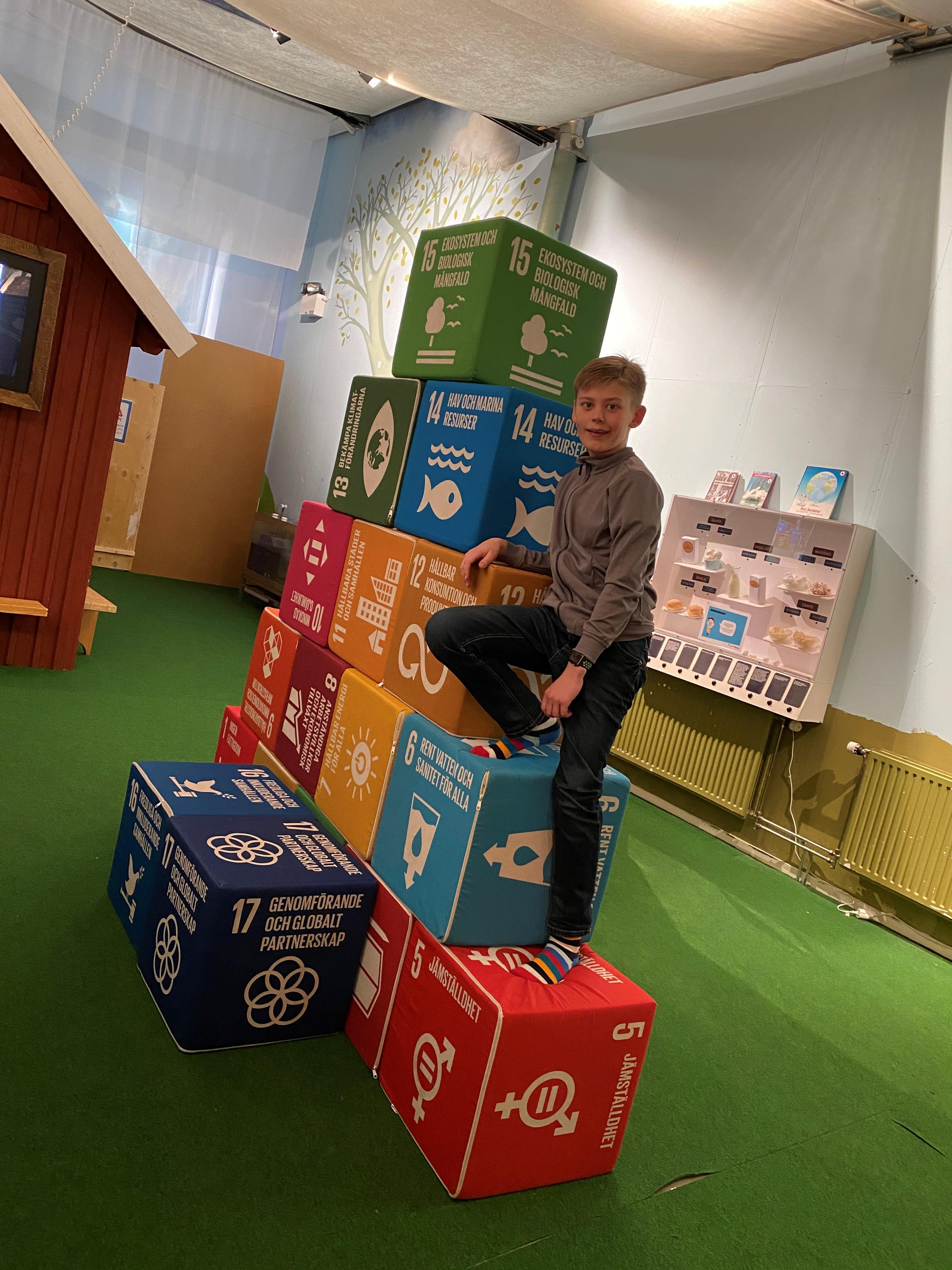 Gustaf Eriksson and his brother tried to build with the big building blocks and talked to one of the CHILD researchers about the Sustainable Development Goals.