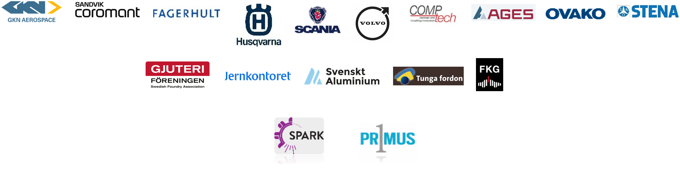 GKN Aerospace Sweden, Sandvik Coromant, Fagerhult, Husqvarna Group, Scania CV, Volvo Cars, Comptech, AGES Industri, Ovako, Stena Metal International, Gjuteriföreningen, Jernkontoret, Svenskt Aluminium, Tunga Fordon, Fordonskomponentgruppen
