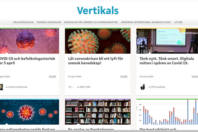 Vertikals är Jönköping Universitys plattform för att göra forskningen mer synlig för en bred publik. Målet är att riva barriärerna mellan akademi och samhälle och ge möjlighet till en mer direkt dialog.