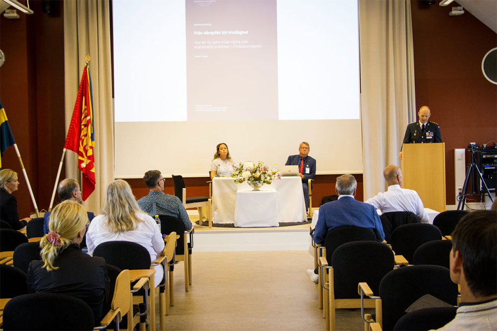 Sommaren 2009 beslutade riksdagen att avskaffa värnplikten, som funnits sedan 1901, och införa frivilliga styrkor. Den första juli 2010 blev den svenska försvarsmakten en organisation ”som alla andra” som måste attrahera, rekrytera och försöka att behålla medarbetare. Processen med denna reform är ämnet för en ny avhandling vid Jönköping International Business School av Sophie Fredén, medarbetare på Millitärhögskolan Halmstad.