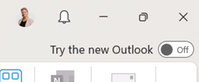 För att testa nya Outlook använder du reglaget i övre högra hörnet.