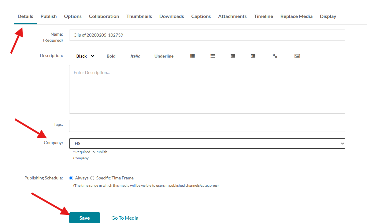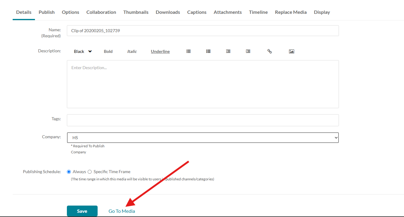 Sedan klickar du på länken Go To Media för att komma tillbaka till rätt vy.