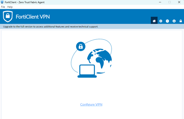 Installera programmet enligt instruktionerna ovan. Öppna sedan FortiClient.