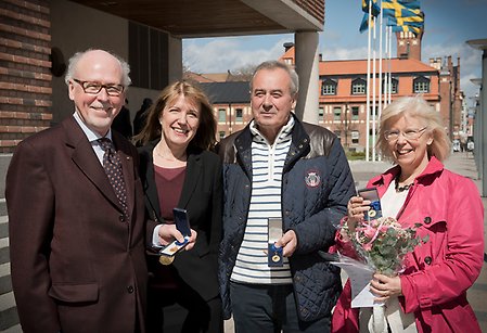 I samband med högskolans traditionella vårfirande tisdag 30 april delades högskolans förtjänsttecken ut för elfte gången. Årets mottagare är Berit Wall, Dan Ekström och Göran Wahlgren.