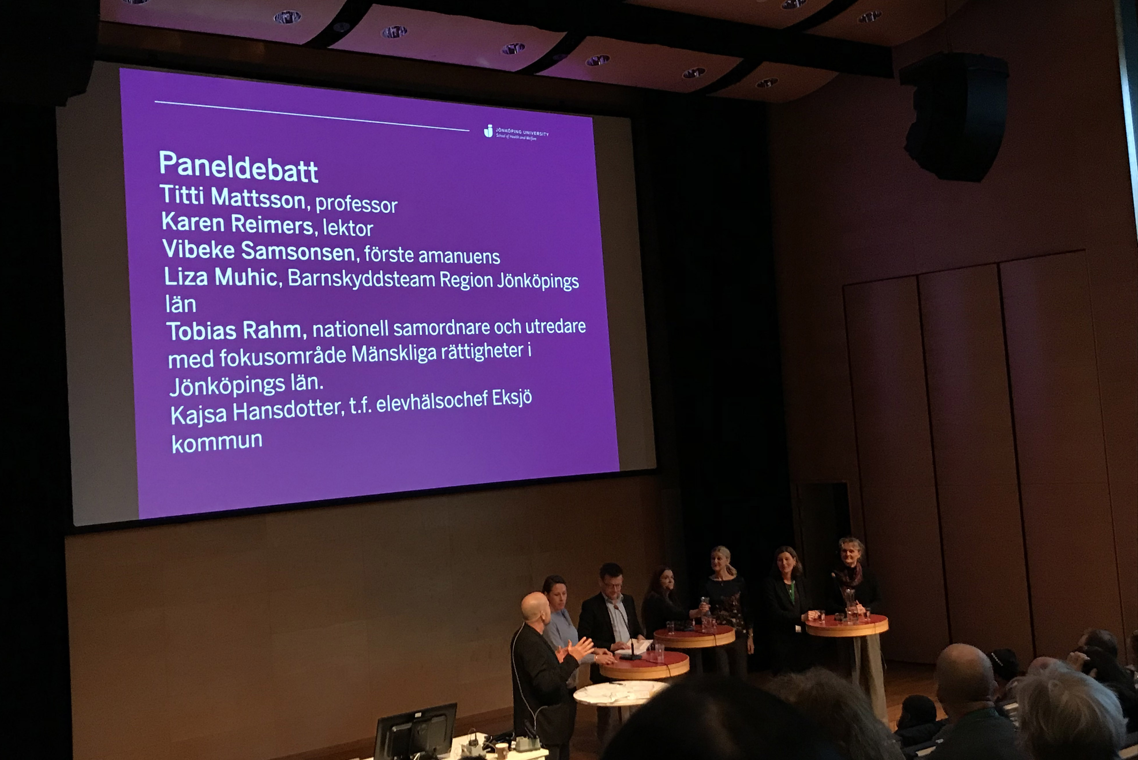 Den sista programpunkten för dagen var en paneldebatt där föreläsarna Titti, Karen och Vibeke deltog tillsammans med flera andra områdeskunniga. Frågorna som ställdes till panelen hade publiken under dagen kunnat skicka in via sms.