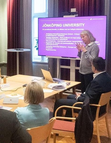 Onsdagen den 15 november välkomnade JU Mats Persson, utbildningsminister, Maria Noleryd, politiskt sakkunnig, Lars Olof Mikaelsson, tjänsteman på Utbildningsdepartementet, och Jimmy Ekström, regionråd på Region Jönköpings län. Syftet med besöket var att visa upp JU:s verksamhet och samtala om utbildning och forskning. Under besöket fick de träffa JU:s ledning, och fick höra hur JU gör skillnad regionalt, nationellt och internationellt.