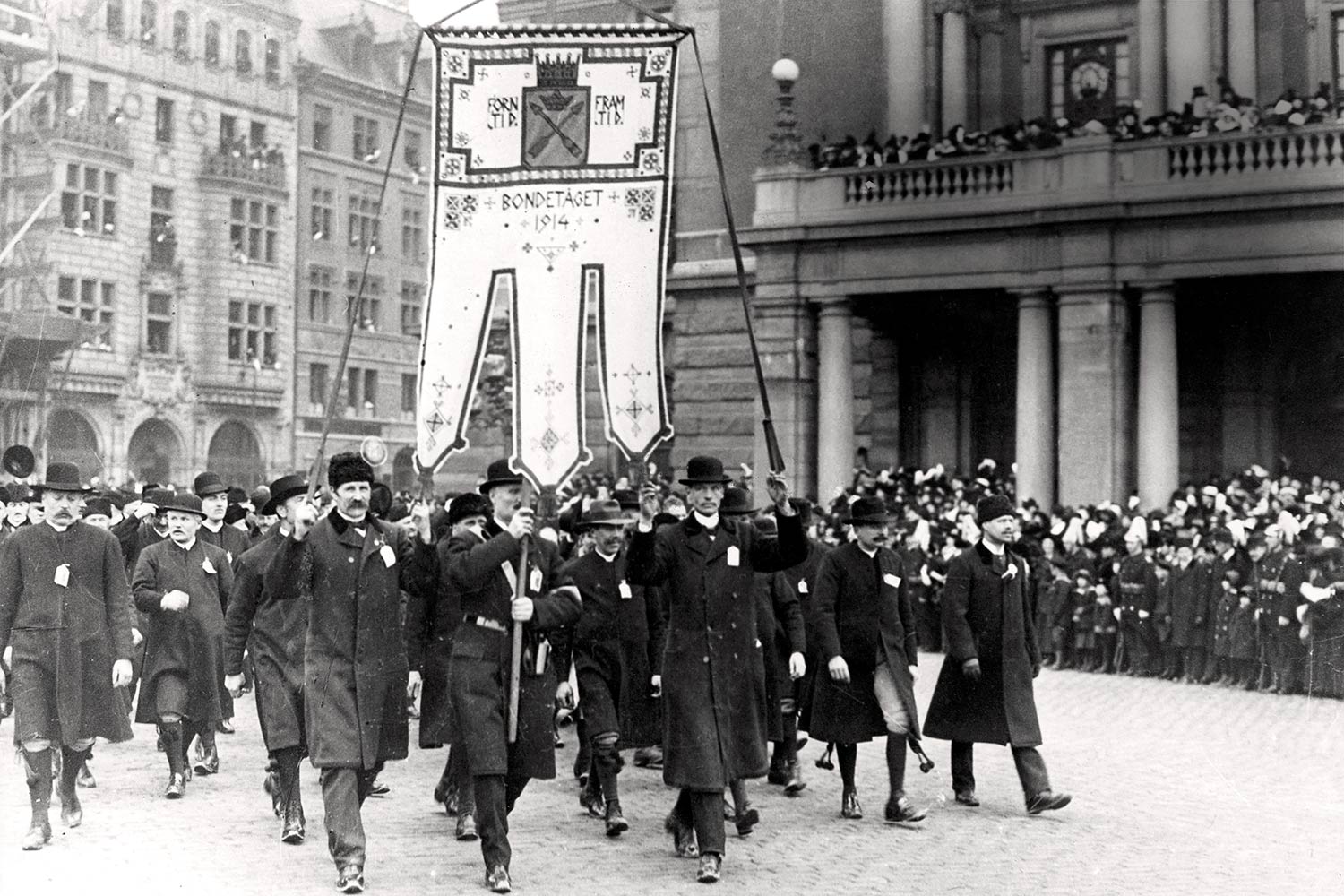 I februari 1914 samlades 30 000 bönder för att visa kung Gustav V sitt stöd för ett starkt försvar. En insamling till en stark svensk marin hade påbörjats 1912. Kungens senare välkända borggårdstal ledde till en regeringskris där resultatet blev att statministern Karl Staaf och dess ministär avgick. Den följande valkampanjen blev hätsk och frågan är om det senare har funnits en så aggressiv valrörelse som denna. Det var två frågor som gällde i valet för eller emot ett starkt försvar och för eller emot en stark monarki. Försvarsfrågan bottnade också i Svens Hedins ”broschyr” där ett Sverige beskrevs som ett land ockuperat av Ryssland. Hatkampanjen var som starkast mot Karl Staaf och han anklagades för att sälja ut Sverige till Ryssland. Detta skedde på offentliga platser, men han hotades också i sitt hem. Valet blev rekordstort och lockade 70 procent av väljarna. Av de ”nytillkomna väljarna” ställde sig majoriteten bakom ett starkare försvar och fortsatt stark kungamakt.
