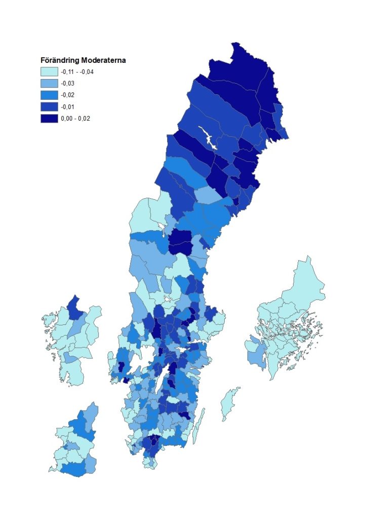 Faktum är att partiet tappade procentandelar i samtliga svenska kommuner. Minst tappade man i Bjurholm, Dorotea och Norsjö. Mest tappade man i Botkyrka, Sundbyberg och Hässleholm.