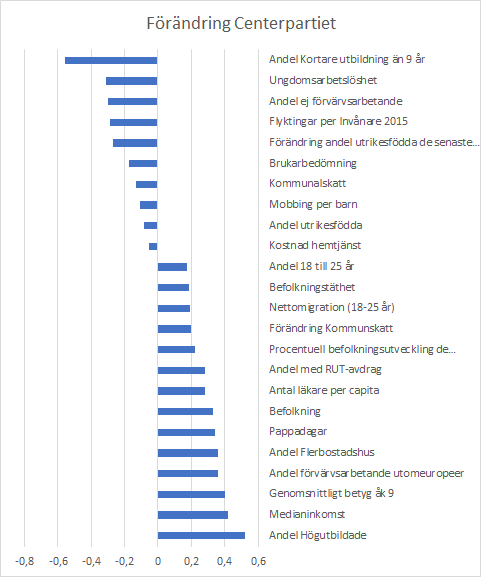 Ser vi på förändringen för Centerpartiet så får vi följande relationer: