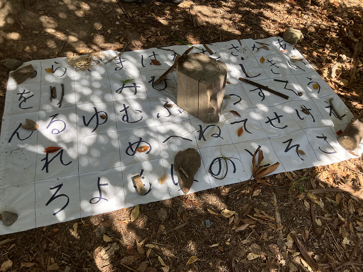 Slutligen används den japanska bokstavsmatten. Varje bokstav ska få ett naturföremål, det vill säga i en svensk kontext skulle det exempelvis bli sten på s, kotte på k och pinne på p.