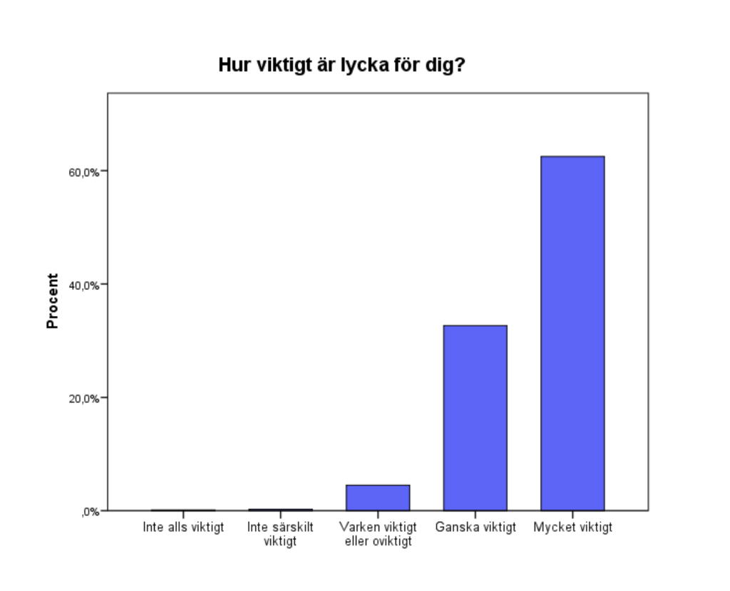 Ett första steg i att besvara frågan om lycka/livstillfredställelse är viktigt för samhället och individer är att fråga dem just detta. I en enkätundersökning genomförd av SOM-institutet 2011 svarade 94,8 procent av respondenterna att lycka är antingen ganska eller mycket viktigt för dem. I enkätundersökningen ställdes följande fråga: Hur viktigt är lycka för dig? och i figuren nedan är svarsfördelningen illustrerad. 64,2 procent svarade att lycka är mycket viktigt, 30,6 procent att lycka är ganska viktigt och 4,5 procent att lycka är varken viktigt eller oviktigt. Färre än 1 procent av deltagarna svarade att lycka är ganska- eller mycket oviktigt för dem. Utifrån dessa siffror kan slutsatsen dras att lycka är viktigt för individen.