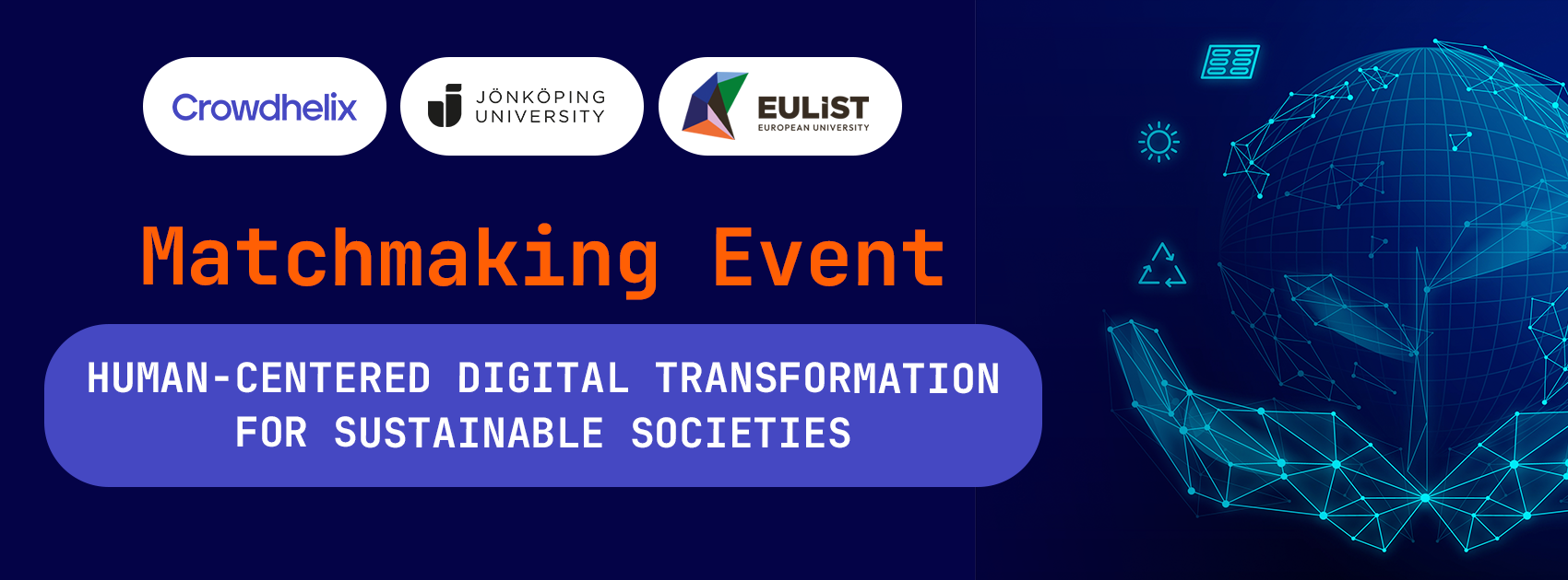 JU är ny medlem i innovationsnätverket Crowdhelix med syfte att skapa strategiska samarbeten och synlighet inom europeisk forskning. Crowdhelix har omfattande erfarenhet av att organisera matchmaking-evenemang inom Horizon Europe och tillgång till ett brett nätverk av forskare inom Europa.