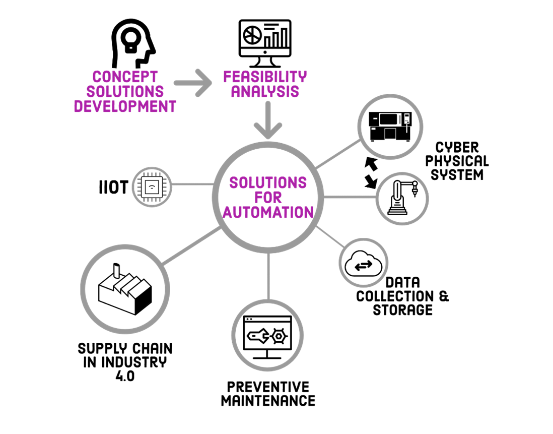 Since small-to-medium enterprises (SMEs) represent a backbone for sustainable economic growth, the need for increasing the degree of automation in production plants is pushing today’s engineers to find customized and cost-efficient solutions. In the Industry 4.0 context, SMEs which are aspiring towards quality, competitiveness and overall customer satisfaction require to work with a systematic approach for implementing cyber physical systems (CPS) that are functioning autonomously and independently from human interaction. An essential area within manufacturing is represented by the maintenance of CNC machine’s tools that are directly responsible for achieving high-quality products. Since corrective maintenance is associated with uncertainty, unforeseen costs and increased downtime, the focus is diverted towards uprising trends of preventive and predictive maintenance policies. The purpose of this thesis is to increase knowledge in the field of new maintenance practices in the context of Industry 4.0 and to provide a framework for achieving customizable automated solutions adapted for the needs and requirements of each individual SME. Our guideline is following to transform the needs of SMEs into technical specifications which are used for designing and generating conceptual solutions whose effect is assessed from technical, economic, socio-environmental, operational and schedule perspective. Furthermore, this framework is conceived to offer a long-term holistic view of the future changes resulted by the implementation of automated solutions.