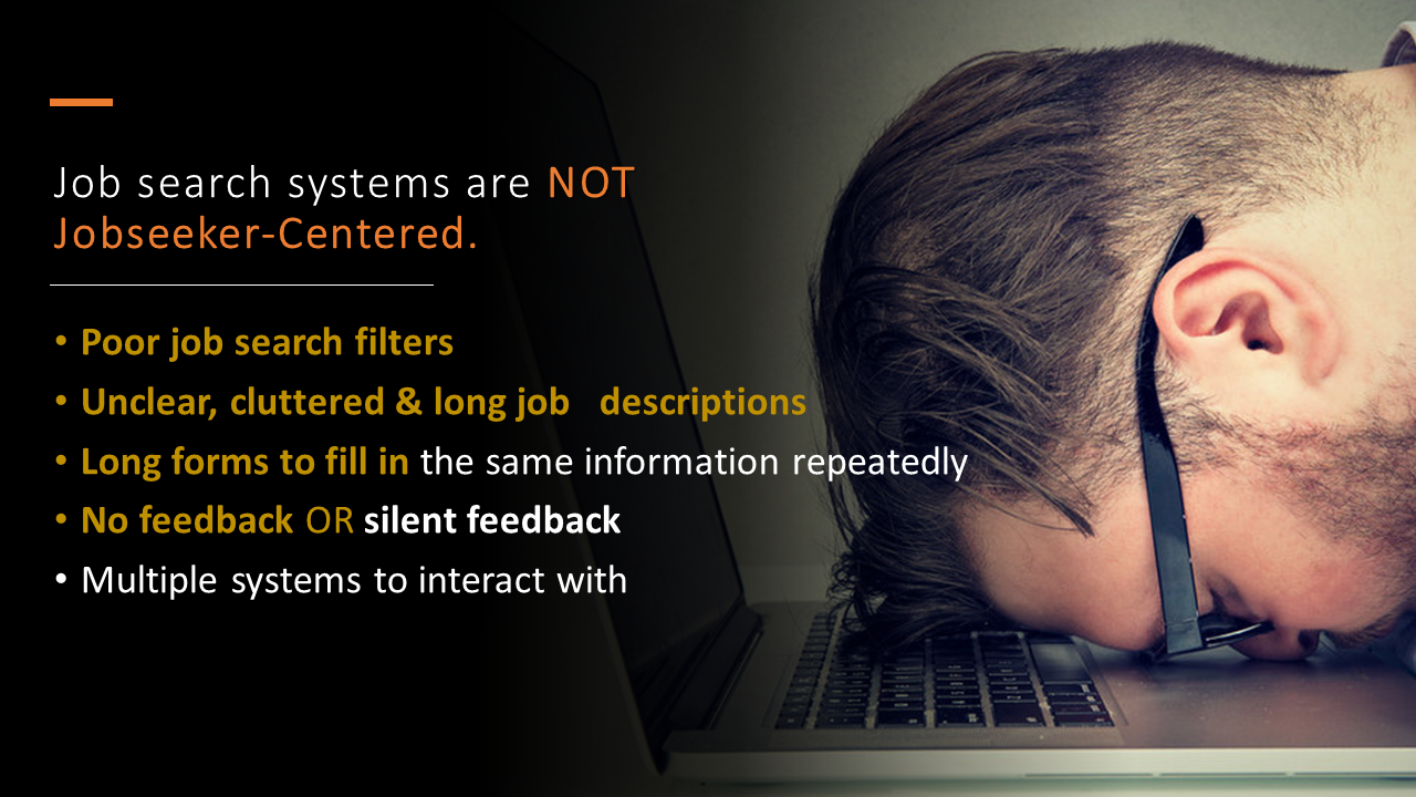 In order to redesign the overall UX of job search systems, one has to understand the broader context on which job seekers encounter these problems, frustrations and painpoints.