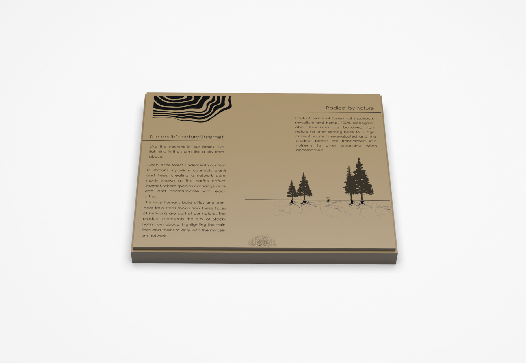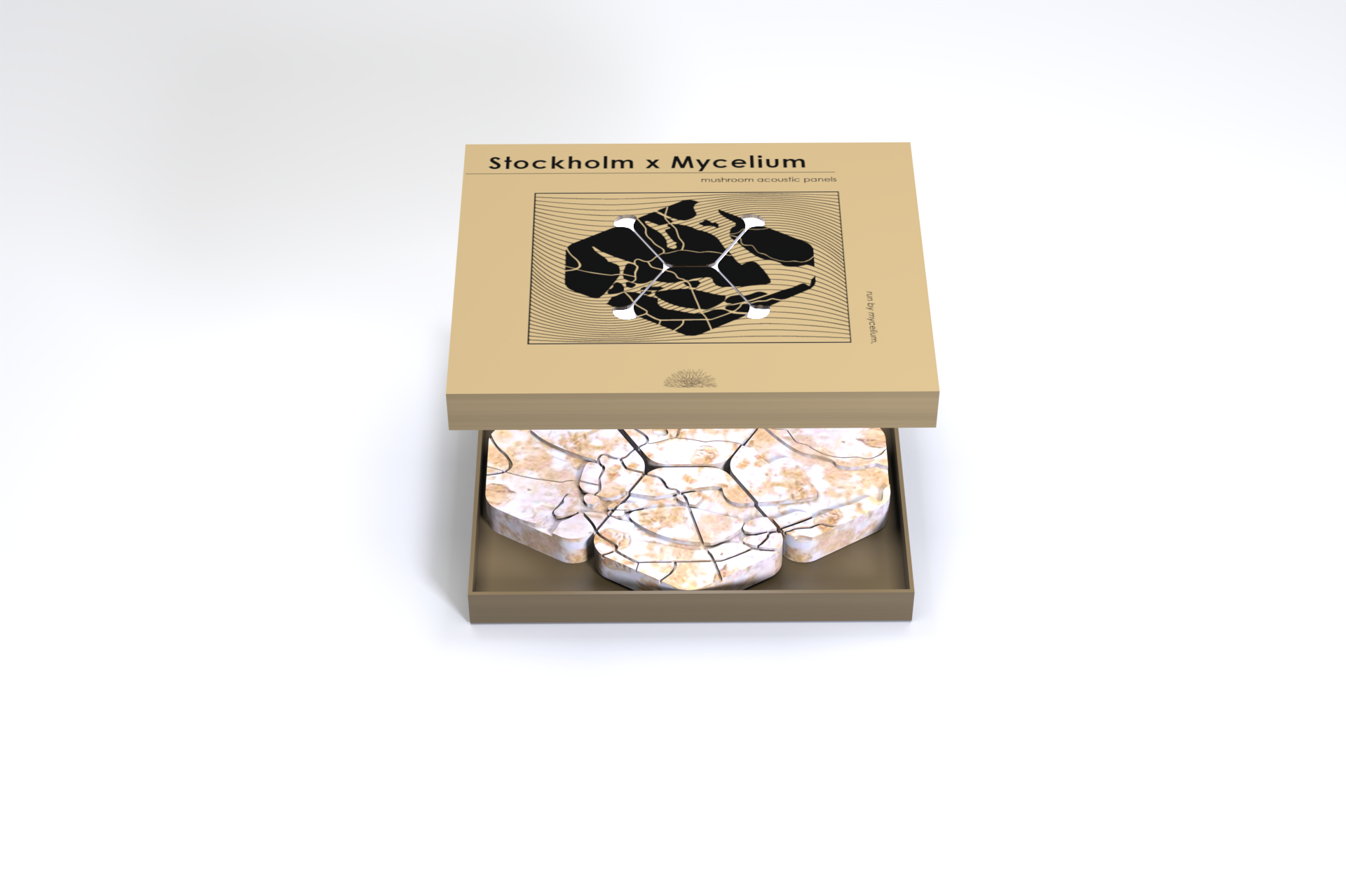 The project aims to; present the existing knowledge regarding mycelium composites, their properties and industrial applications related to product design; to develop an acoustic insulation application where the intrinsic characteristics of the material are valued, there is a purpose of generating emotion and awareness of sustainability.