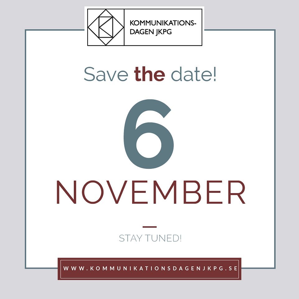 Årets kommunikationsdag kommer inträffa den 6 november och vi har många spännande föreläsningar som väntar på er. Så save the date! Anmälan öppnar i höst. Håll er uppdaterade på vår hemsida www.kommunikationsdagenjkpg.se
