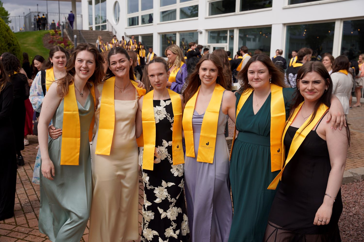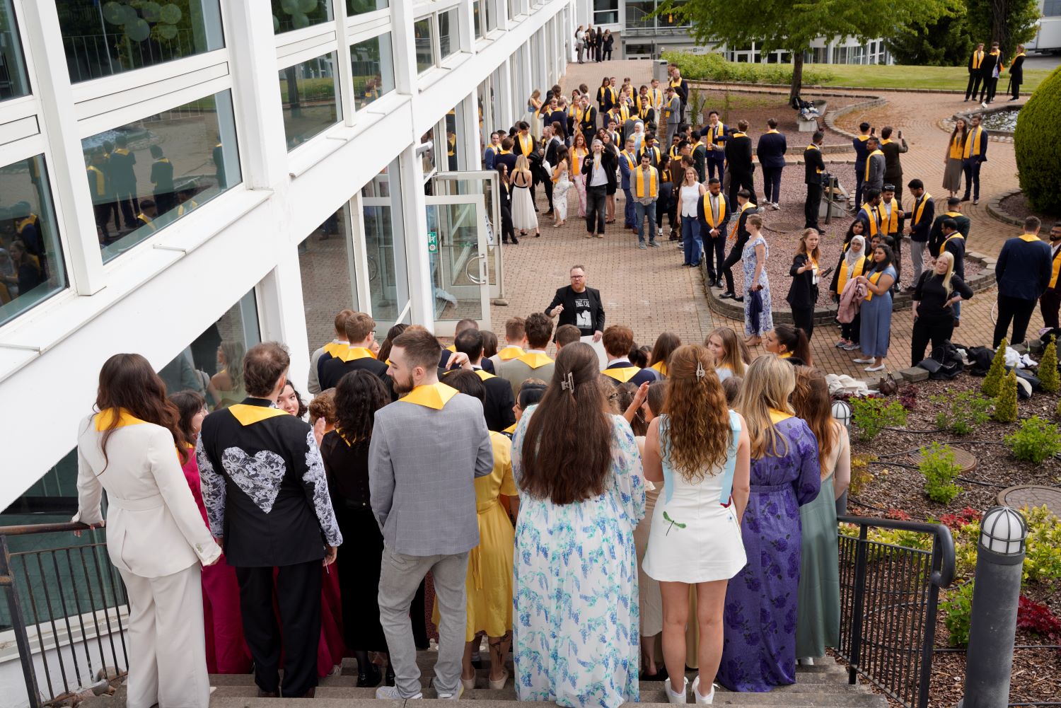 Det finns ingen officiell klädkod för avslutningen med de flesta studenter väljer en smart casual stil.